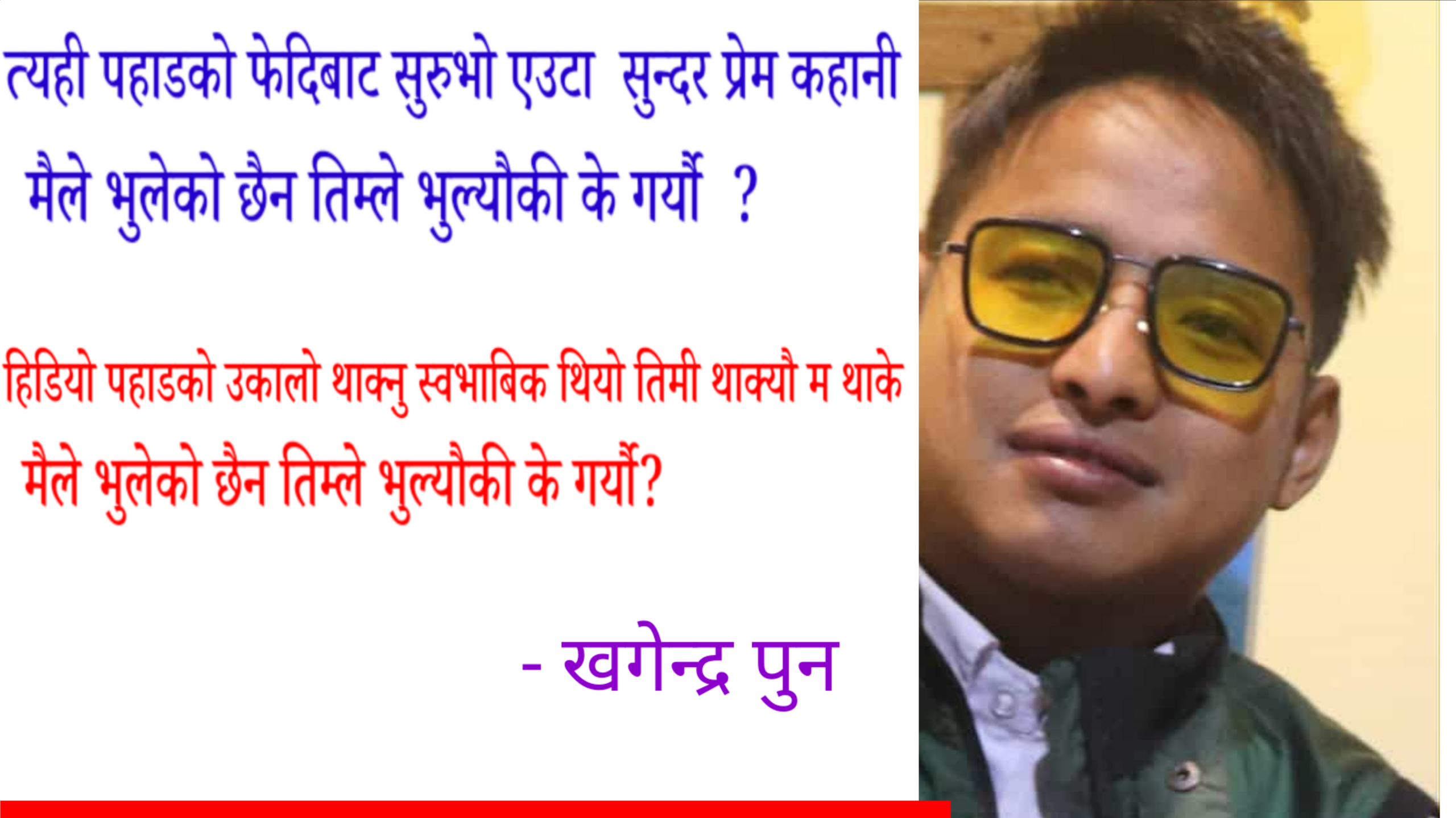 त्यही पहाडको फेदिबाट सुरुभो एउटा सुन्दर प्रेम कहानी मैले भुलेको छैन तिम्ले भुल्यौकी के गर्यौ ?